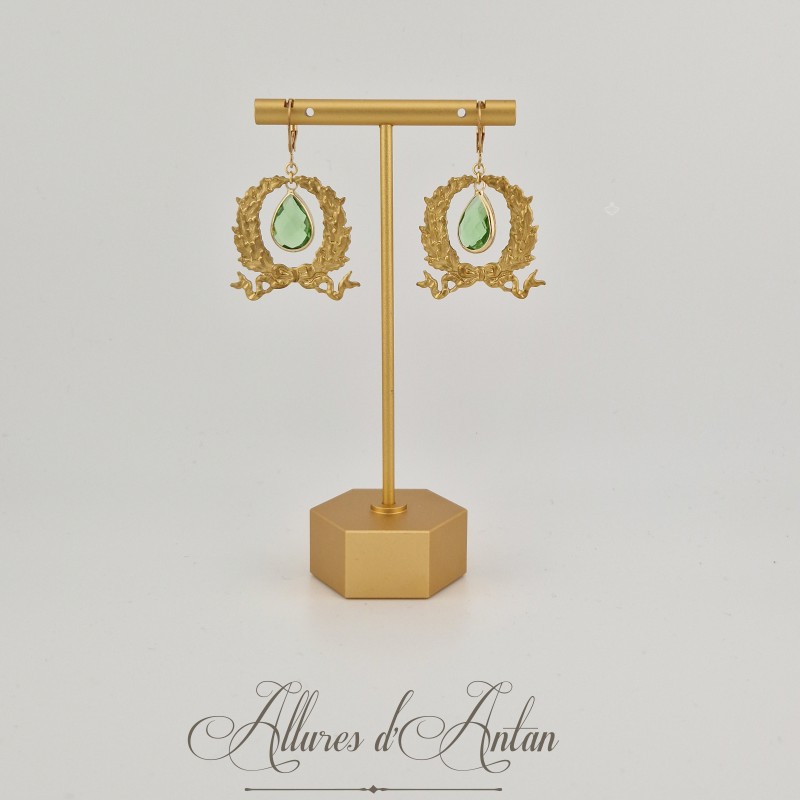 Boucles d'oreilles XVIIIe Noeud - Strass VERT CLAIR