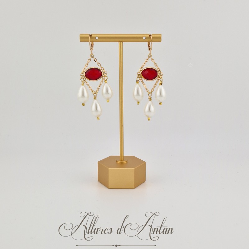 Boucles d'oreilles Strass et Perles Gouttes - Rouge