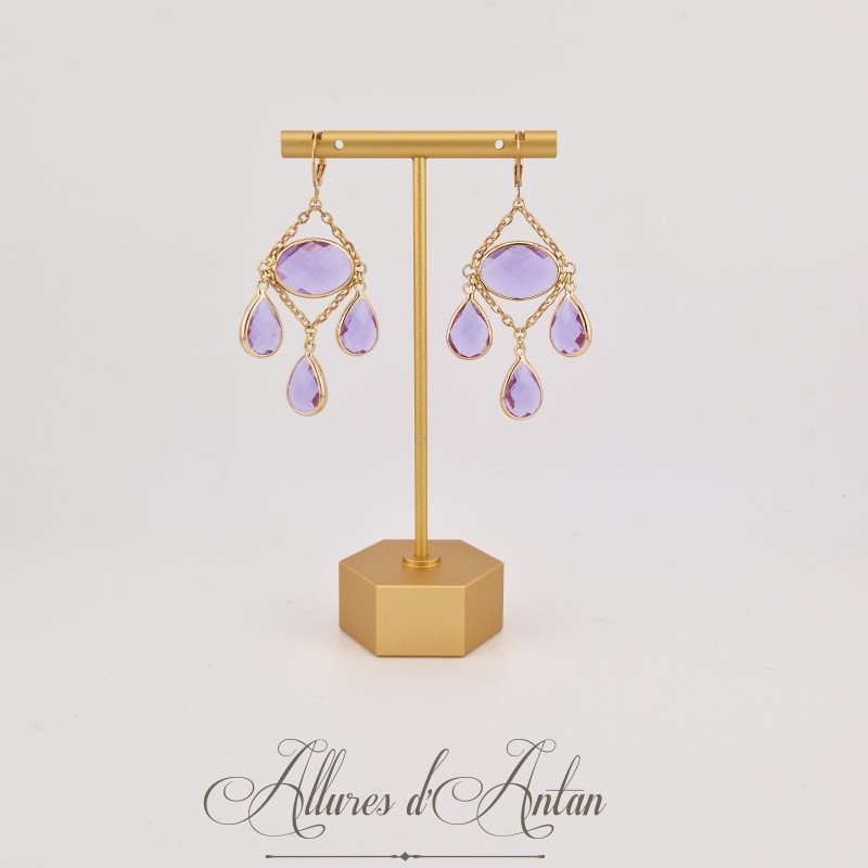 Boucles d'oreilles Strass - Mauve