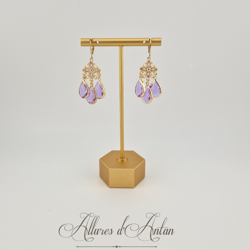 Boucles d'oreilles Strass - Mauve
