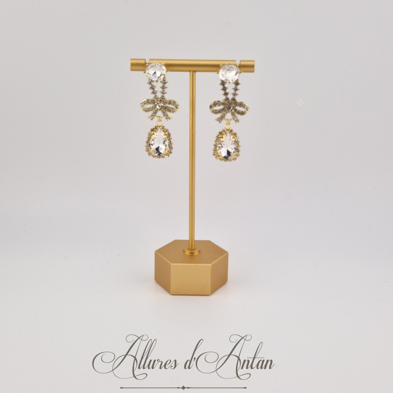 Boucles d'oreilles XVIIIe Noeud Doré - strass Blanc