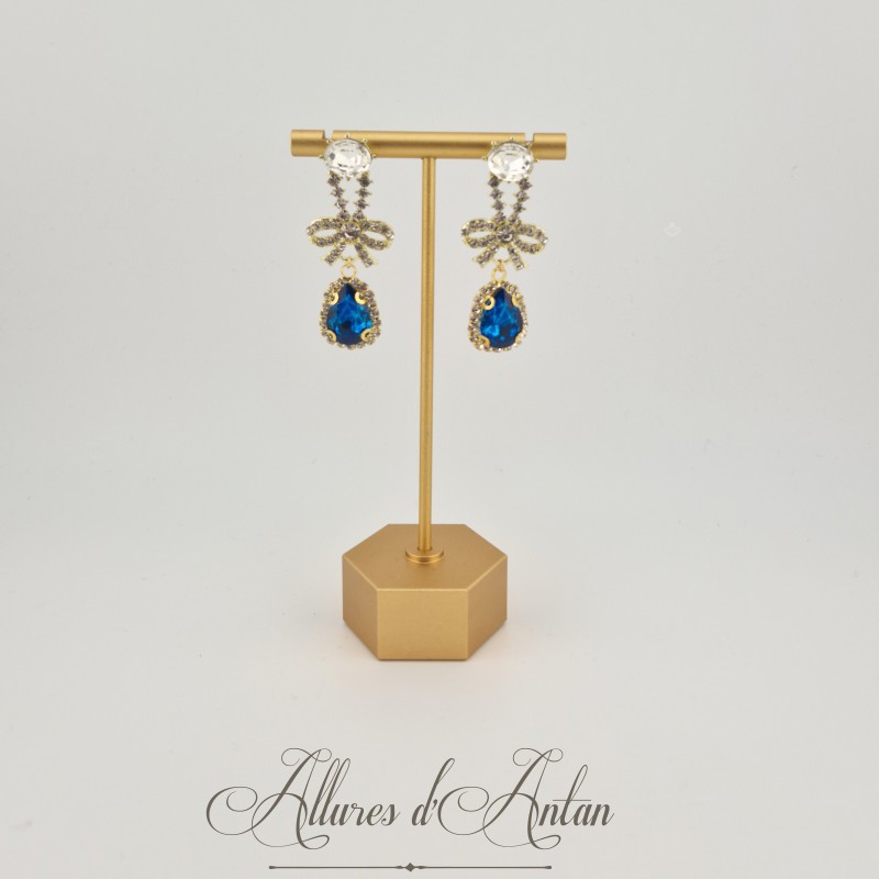 Boucles d'oreilles XVIIIe Noeud Doré - strass Bleu