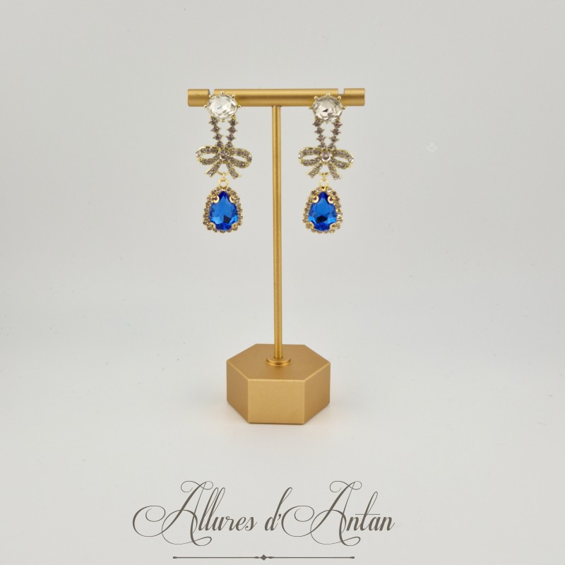 Boucles d'oreilles XVIIIe Noeud Doré - strass Bleu