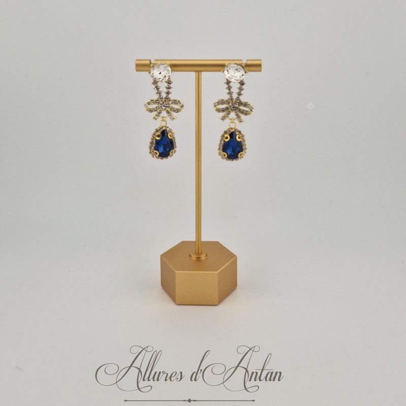 Boucles d'oreilles XVIIIe Noeud Doré - strass Bleu