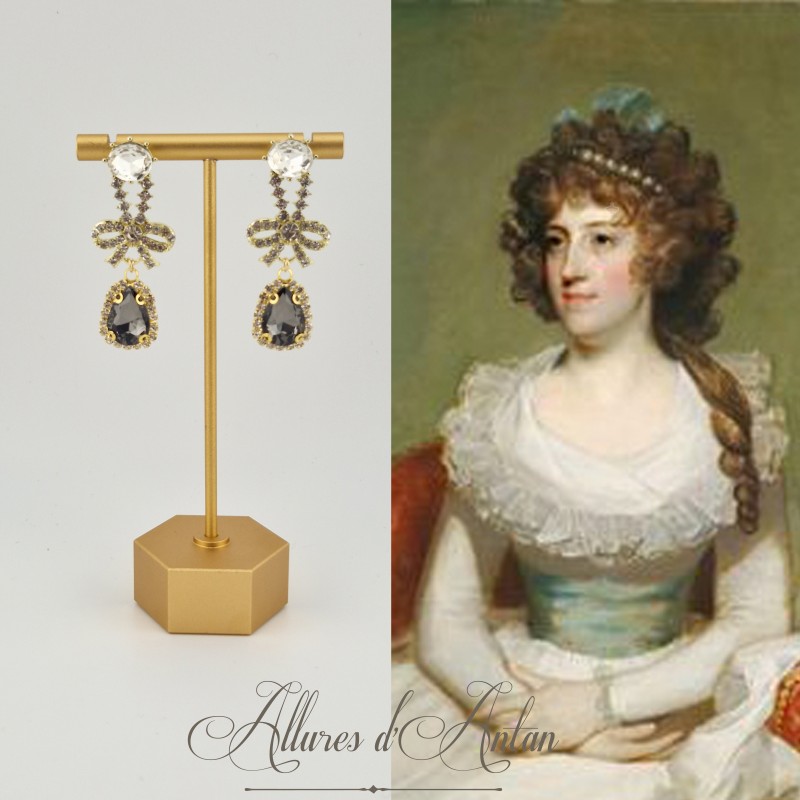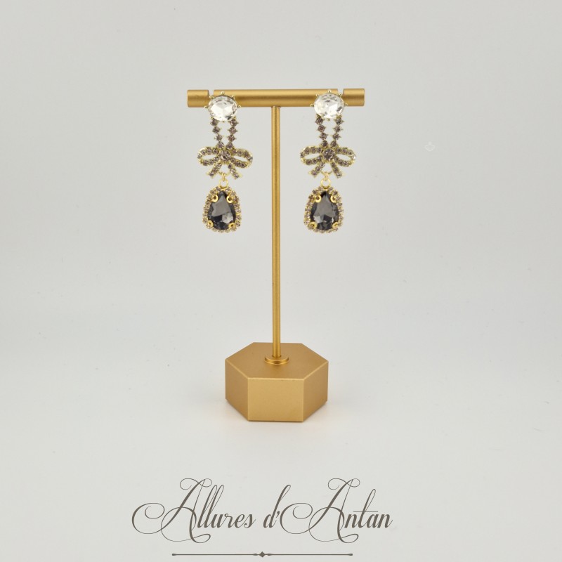 Boucles d'oreilles XVIIIe Noeud Doré - strass Gris