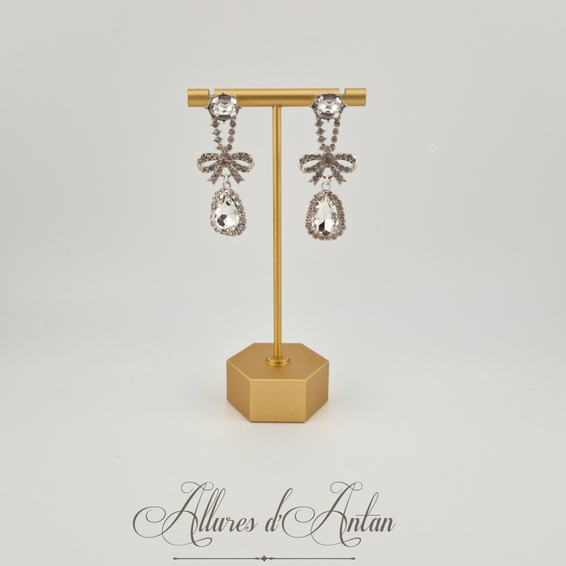 Boucles d'oreilles période XVIIIe, noeud et strass