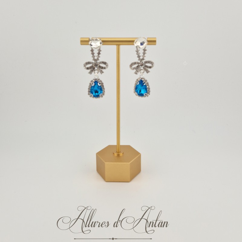 Boucles d'oreilles XVIIIe Noeud Argenté - strass Bleu