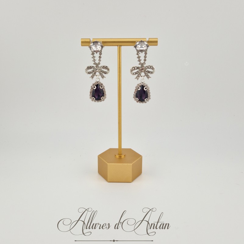Boucles d'oreilles XVIIIe Noeud Argenté - strass Violet
