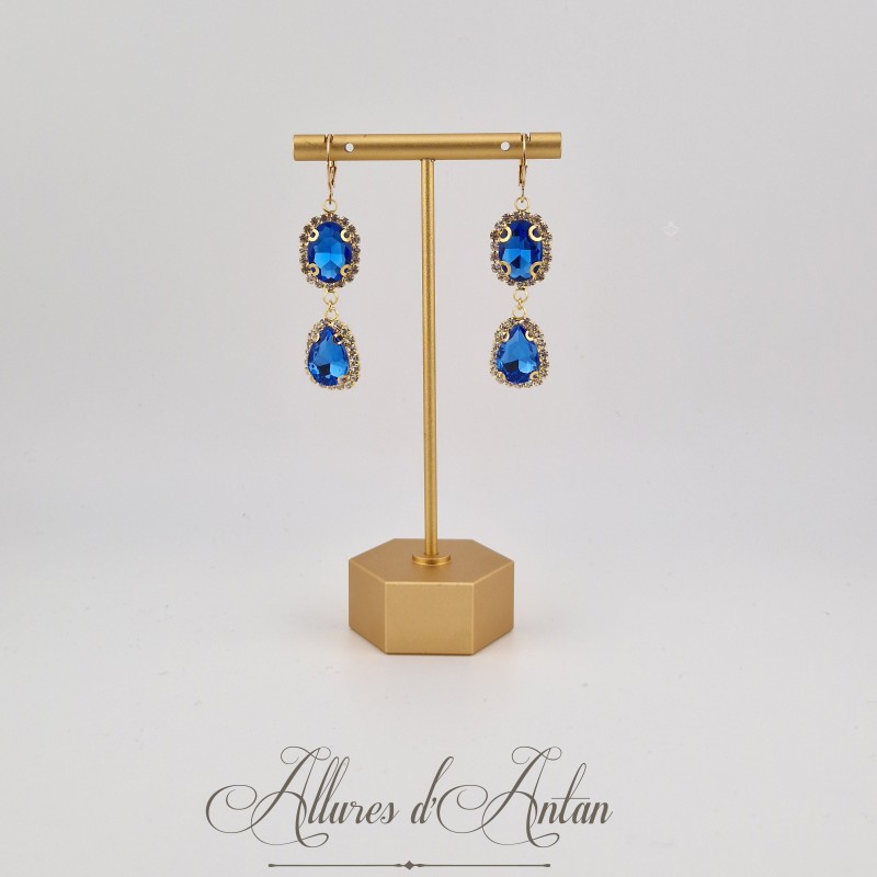 Boucles d'oreilles Strass Doré - Bleu