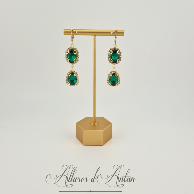 Boucles d'oreilles Strass Doré - Vert
