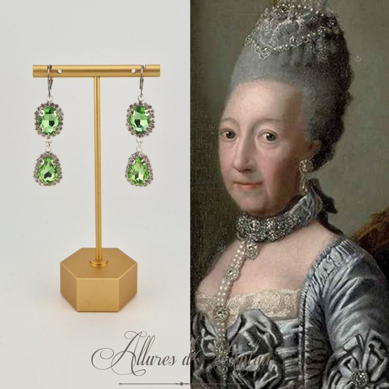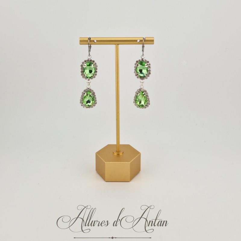 Boucles d'oreilles Strass Argenté - Vert Clair