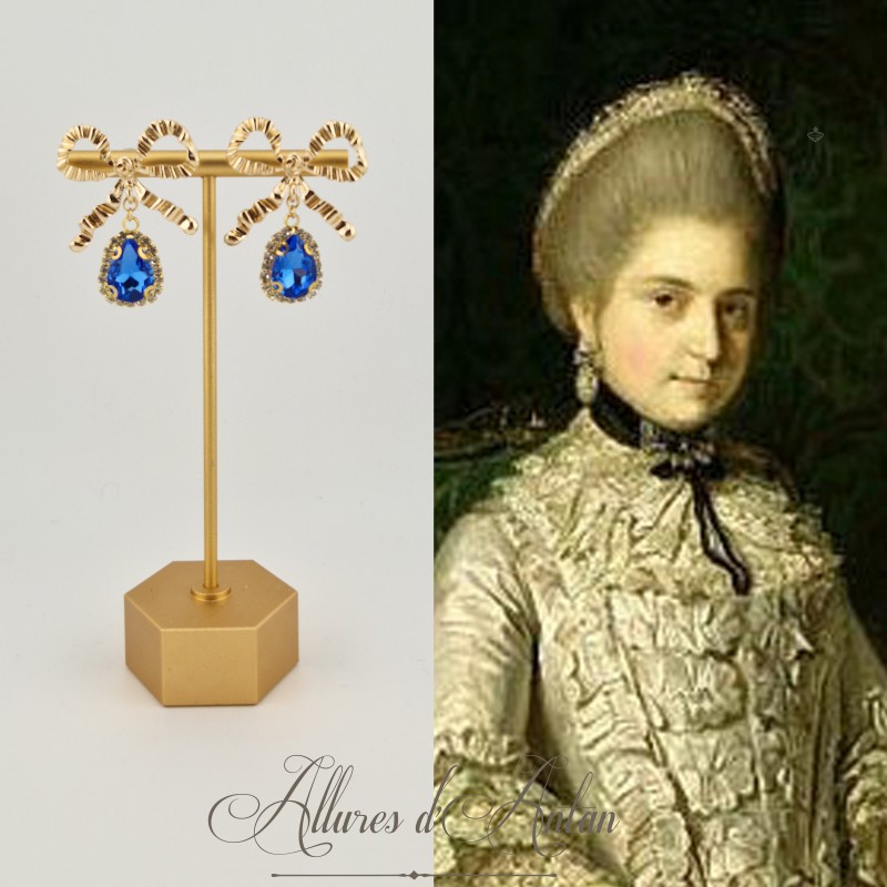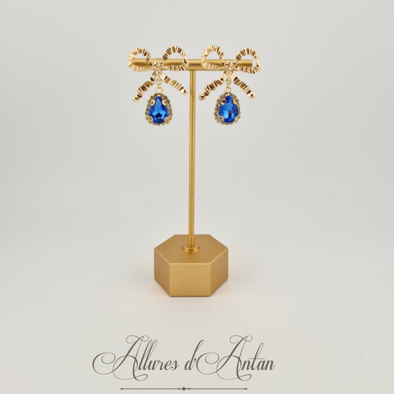 Boucles d'oreilles XVIIIe Noeud - strass Bleu