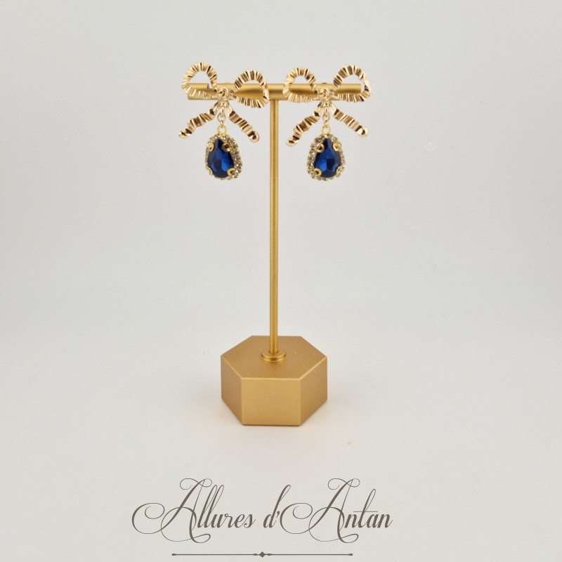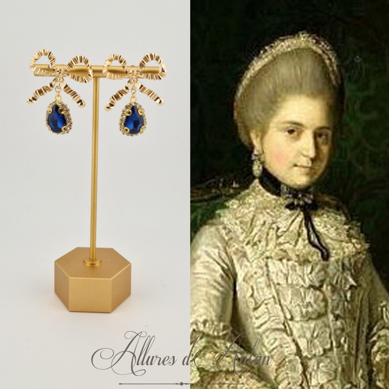Boucles d'oreilles XVIIIe Noeud - strass Bleu