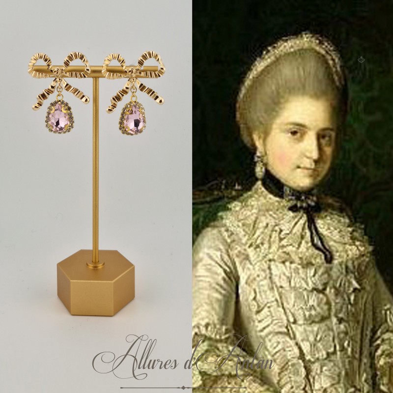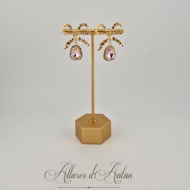 Boucles d'oreilles XVIIIe Noeud - strass Rose