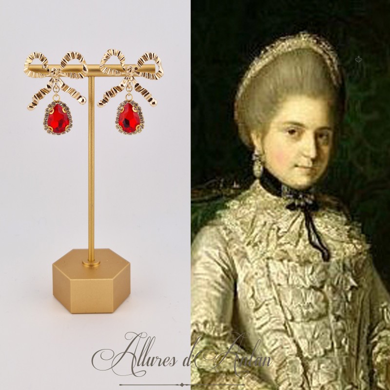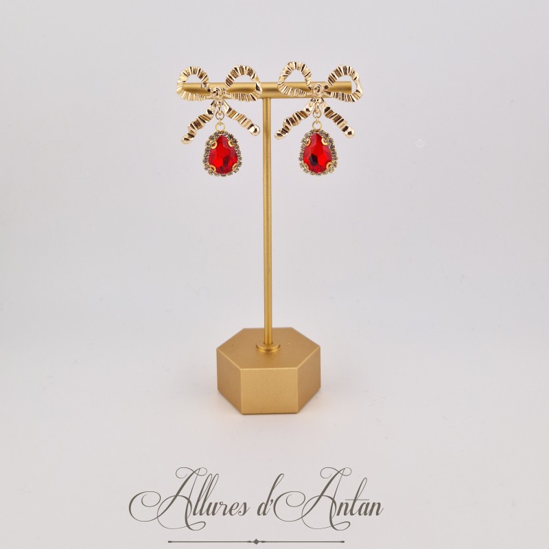 Boucles d'oreilles XVIIIe Noeud - strass Rouge