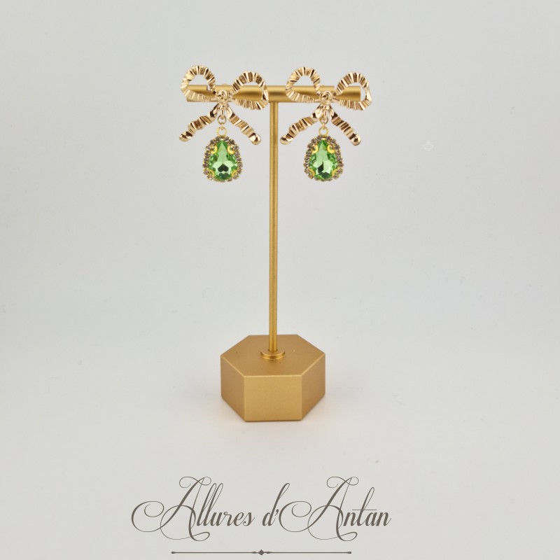 Boucles d'oreilles XVIIIe Noeud - strass Vert Clair