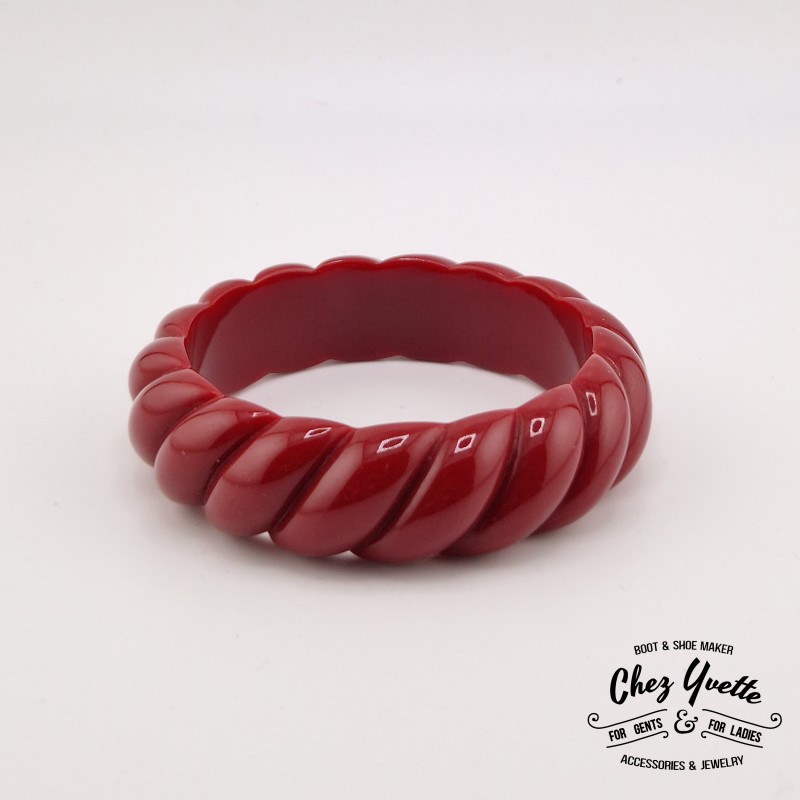 Plongez dans l’élégance des années 40 avec ce somptueux bracelet extensible signé Chez Yvette. Son design vintage met en valeur des formes généreuses et un fini marbré unique, rappelant le charme intemporel des bijoux d’époque.