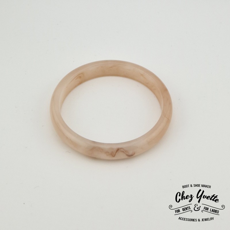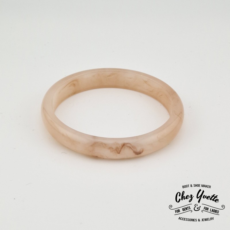Plongez dans l’élégance des années 40 avec ce somptueux bracelet extensible signé Chez Yvette. Son design vintage met en valeur des formes généreuses et un fini marbré unique, rappelant le charme intemporel des bijoux d’époque.