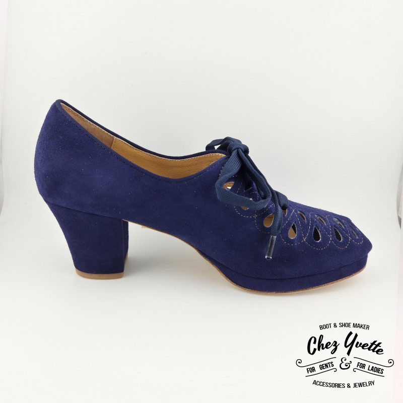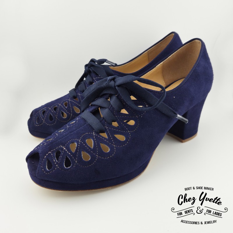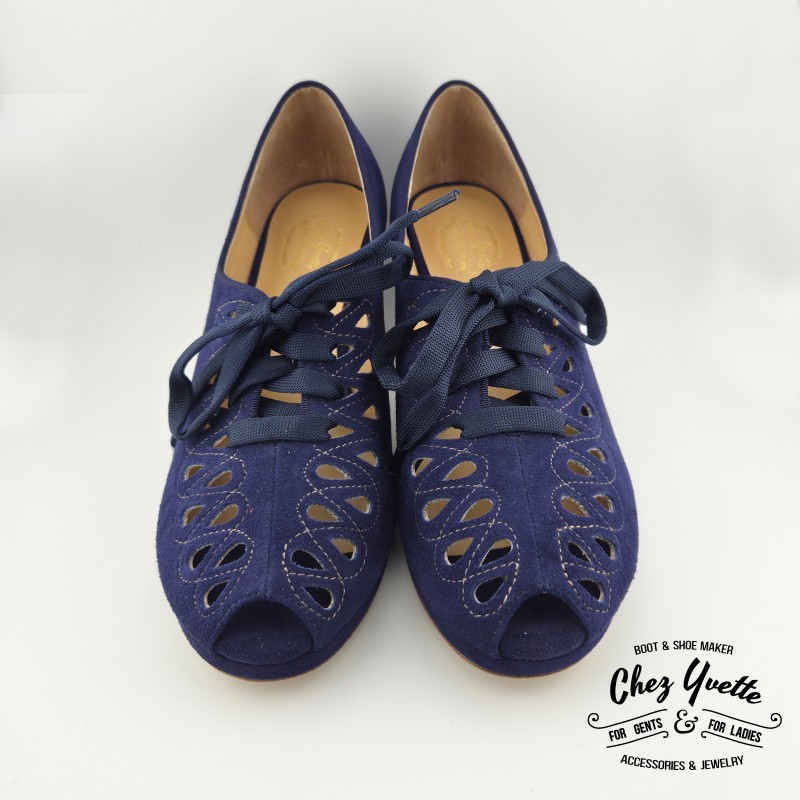 Plongez dans le charme intemporel des années 40 avec ces chaussures élégantes en cuir de daim ajouré, un design emblématique de la période. À la fois raffinées et féminines, elles allient style vintage et confort pour une silhouette élégante en toute occasion. Entièrement doublées en cuir, elles offrent un chaussant agréable et une grande souplesse