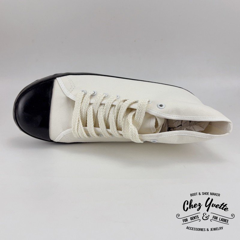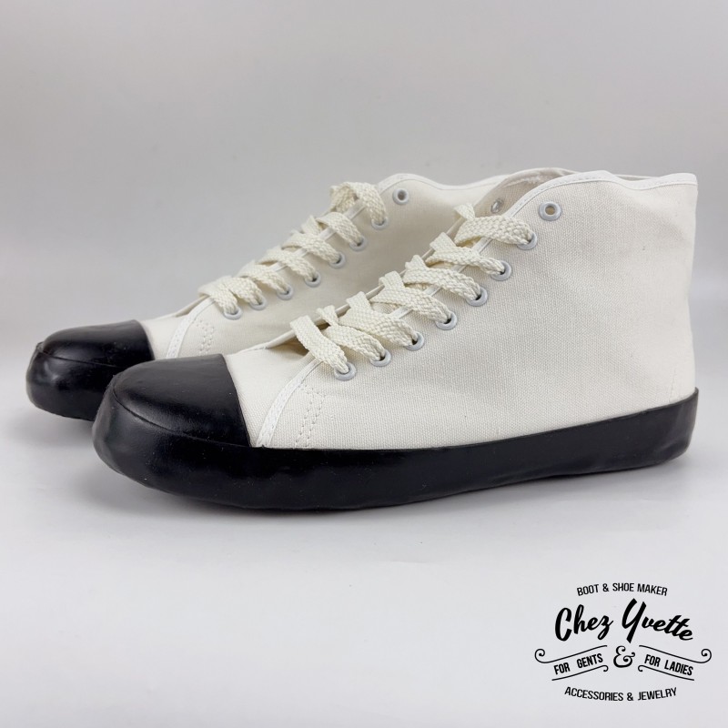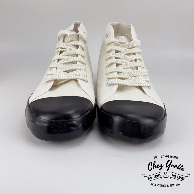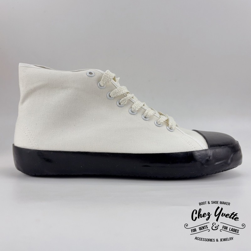 Remontez le temps avec cette paire de chaussures d’exercice pour hommes, fidèlement inspirée des modèles militaires américains de la Seconde Guerre mondiale. Avec leur design épuré, en toile écrue résistante et leur bout renforcé en caoutchouc noir, ces chaussures incarnent parfaitement la fonctionnalité sobre et l’esthétique utilitaire des années 1940.