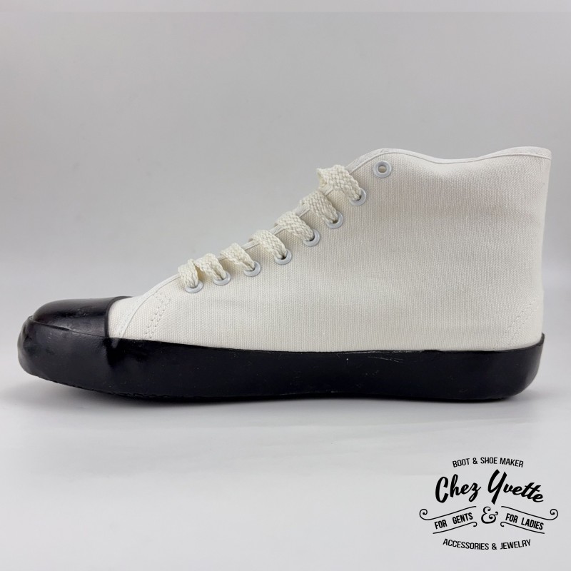Pensées pour accompagner les activités physiques de l’époque, elles sont dotées d’une semelle intégrale en caoutchouc noir antidérapant et d’un laçage classique à œillets métalliques, offrant un maintien fiable et un confort durable. Leur légèreté et leur robustesse en font une pièce idéale pour les reconstitutions historiques, les tenues d’inspiration vintage ou les collectionneurs exigeants à la recherche de fidélité historique.