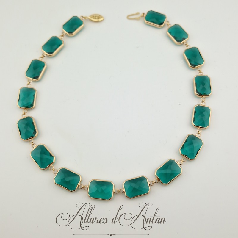 Collier Strass Carrés - Vert