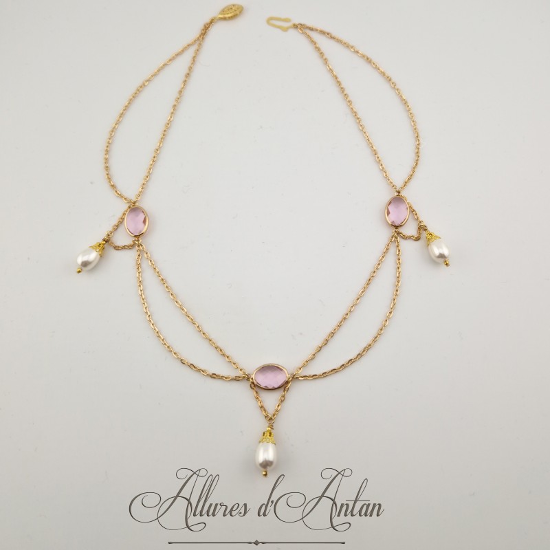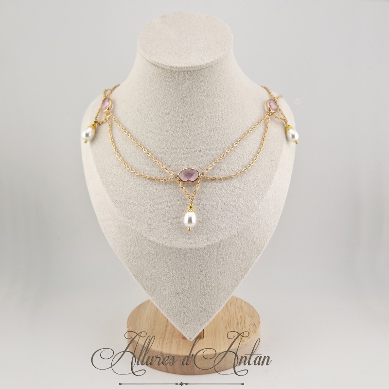 Collier tissé en perlesCollier en esclavage , chaine et strass en verre.