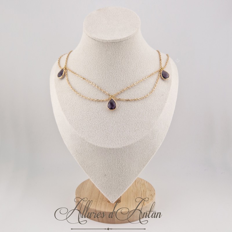 Collier en esclavage , chaine et strass en verre, coloris VIOLET