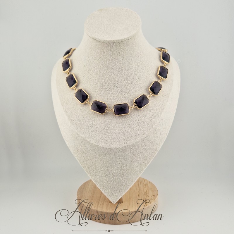 Collier Strass Carrés - Violet