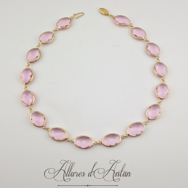 Collier Strass Ovales - Rose