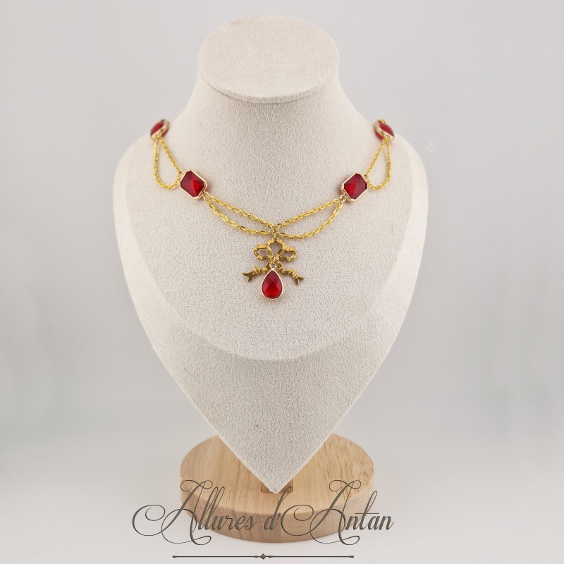 Collier en esclavage- Chaine et Strass - Rouge