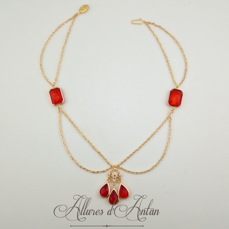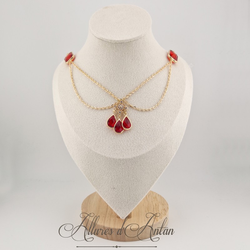 Collier- Chaine, Strass - Rouge