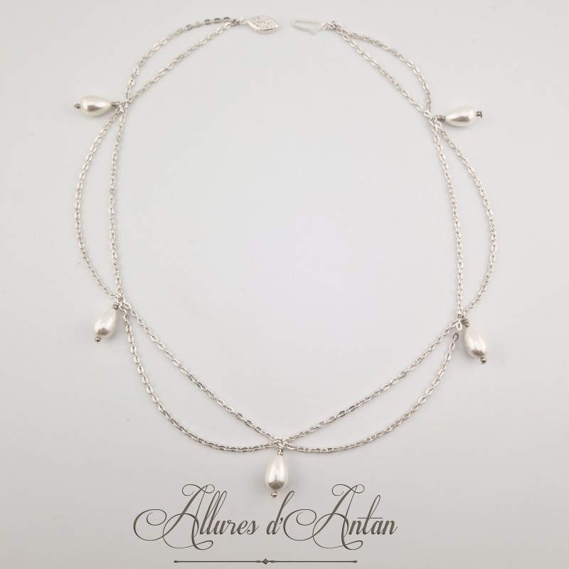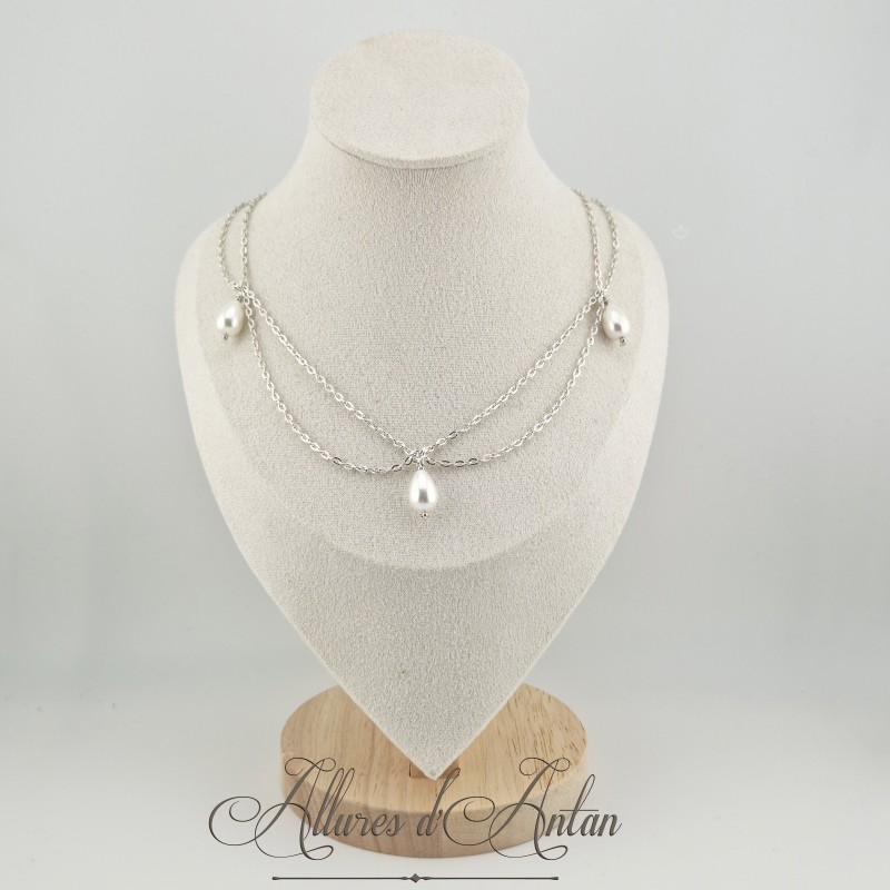 2 rangs de chaine Argentee , fermoir sécurisé.