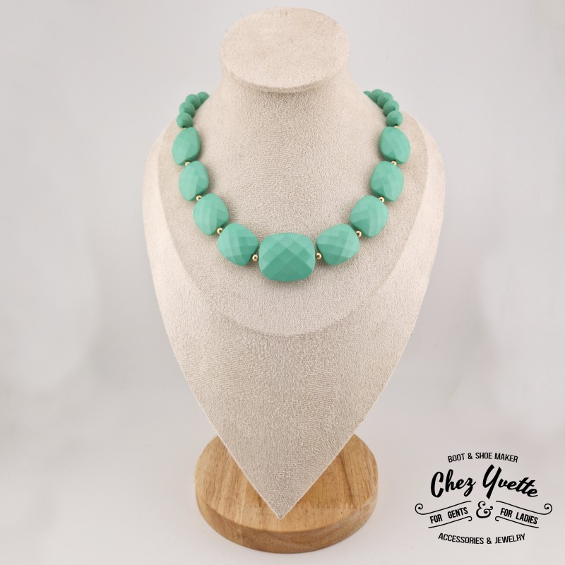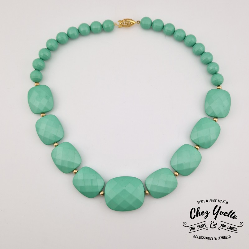 Apportez une touche d'élégance et de fraîcheur à votre tenue avec ce somptueux collier Chez Yvette. Composé de perles facettées, il capte la lumière à chaque mouvement, créant un éclat subtil et raffiné.