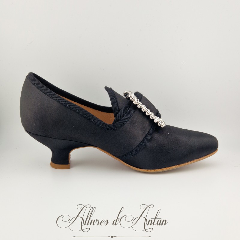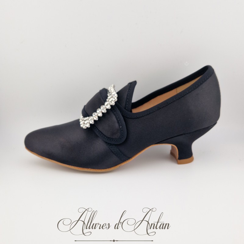 Leur boucle carrée ornée de strass ajoute une touche de brillance digne des élégances d’antan, tandis que leur talon de 4,7 cm affine la silhouette tout en garantissant confort et stabilité. Doublées de cuir, ces chaussures offrent un chaussant agréable, tandis que leur semelle en caoutchouc discrète assure une meilleure adhérence et une durabilité accrue, sans altérer leur apparence historique.
